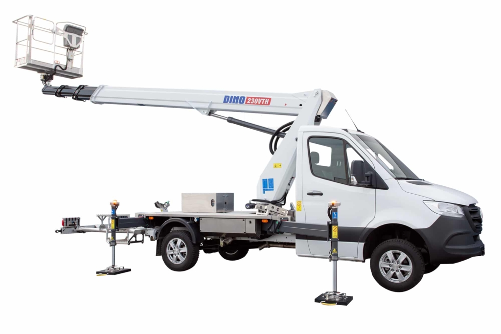 En teleskopisk arbetsplattform monterad på en 3,5-ton lastbil, med en maximal arbetshöjd på 23 meter är en av de högst räckande hybridlastbilarna på marknaden.